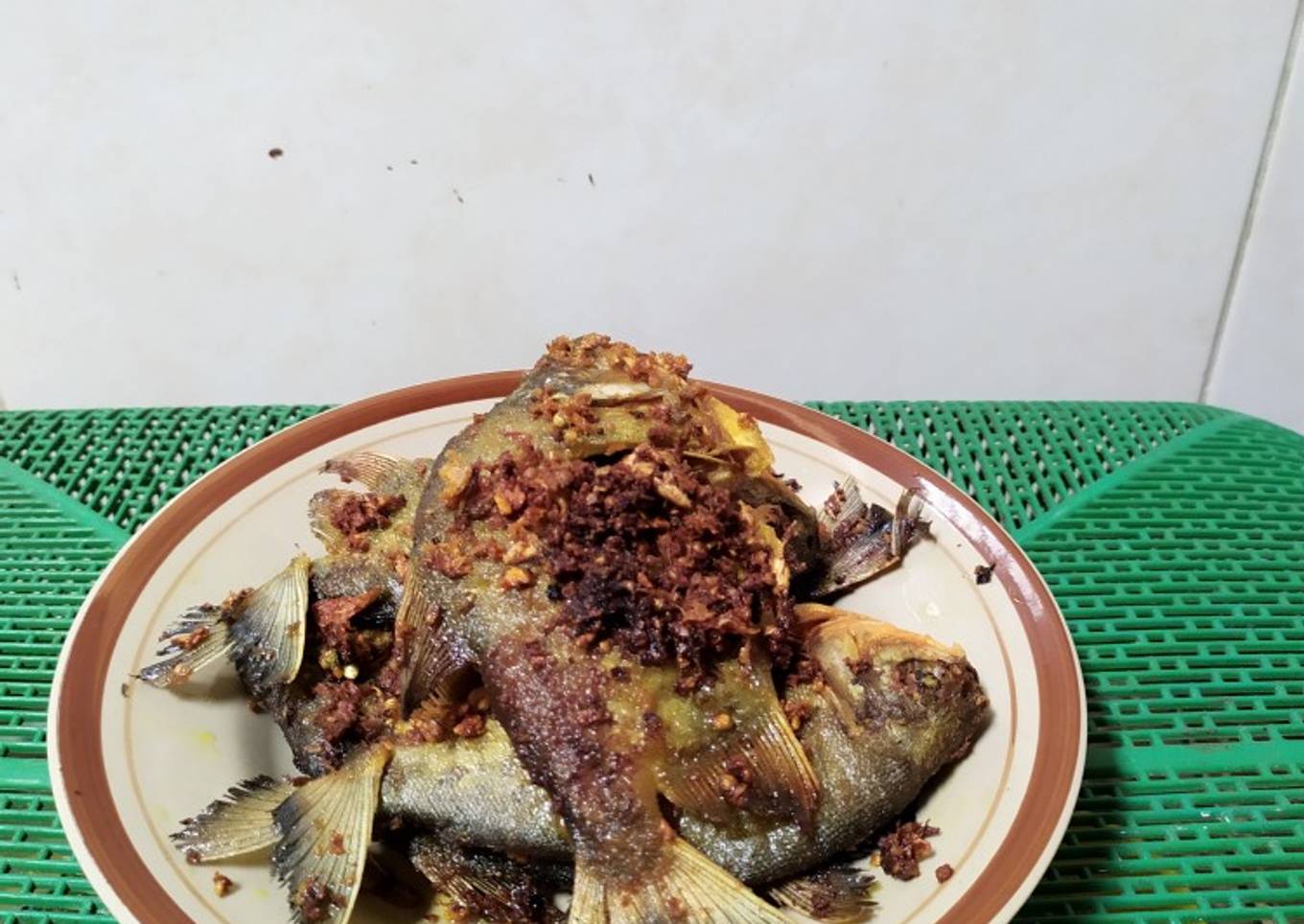 - Ikan bawal goreng, siap disajikan.