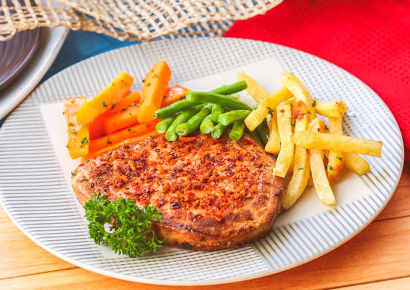 - Angkat dan Steak Ikan sajikan dengan taburan BonCabe level 10.
